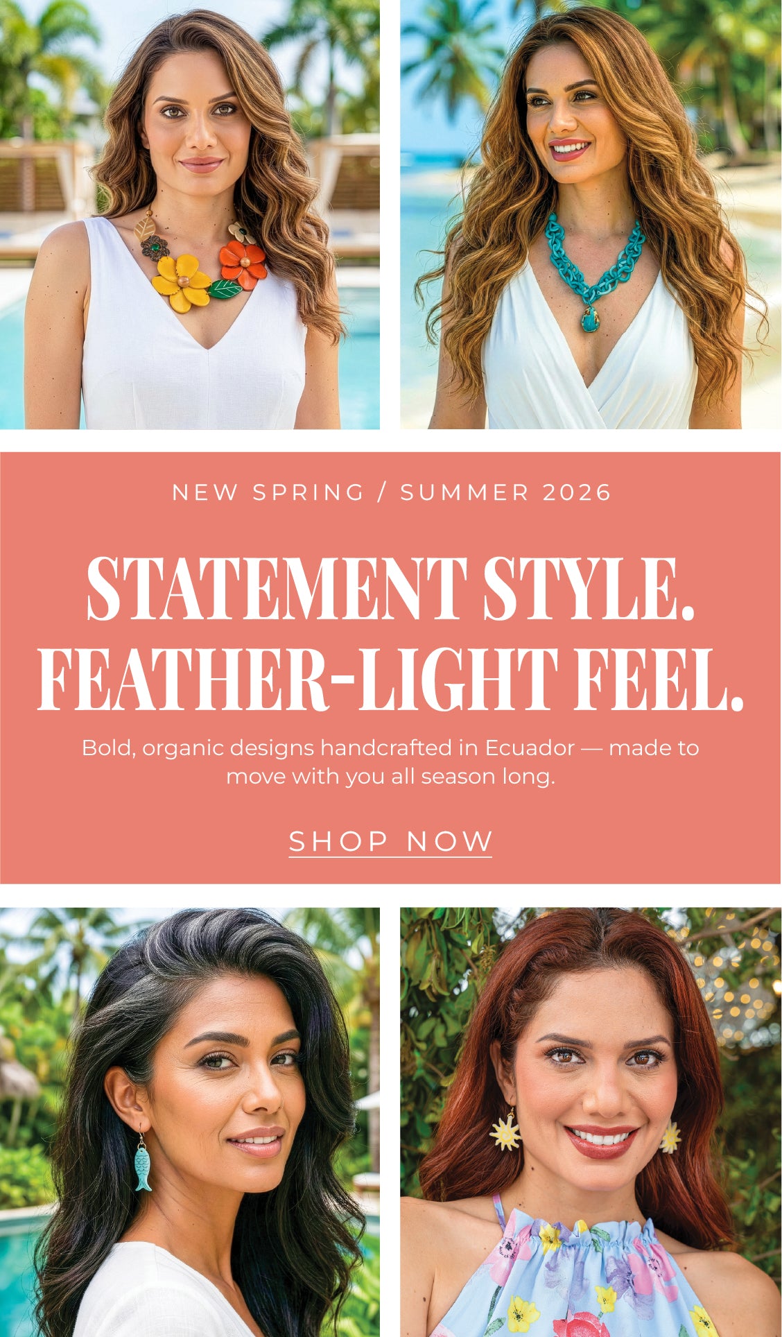 What began with love and autism awareness has grown into a mission of fair trade and heritage craftsmanship preservation — creating sustainable, handmade jewelry from Ecuador. Natural elegance with the heart of the rainforest.