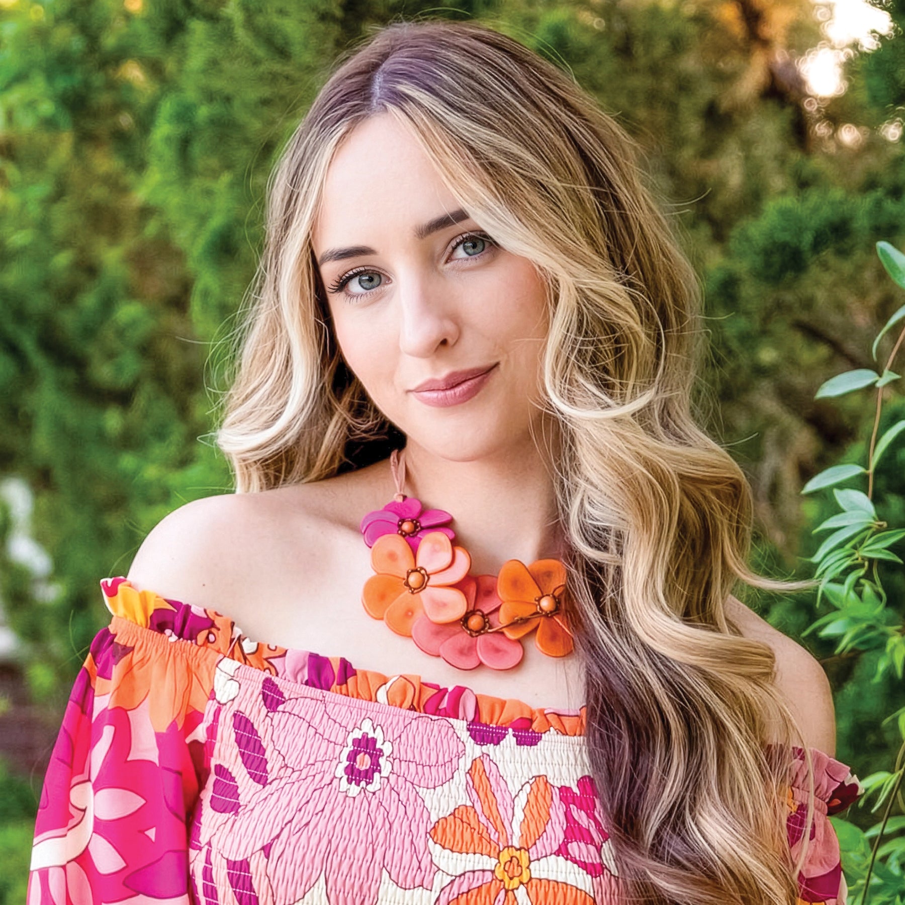 Irresistible fashion forward adjustable necklace handmade with exquisite hand-crafted tagua flowers.