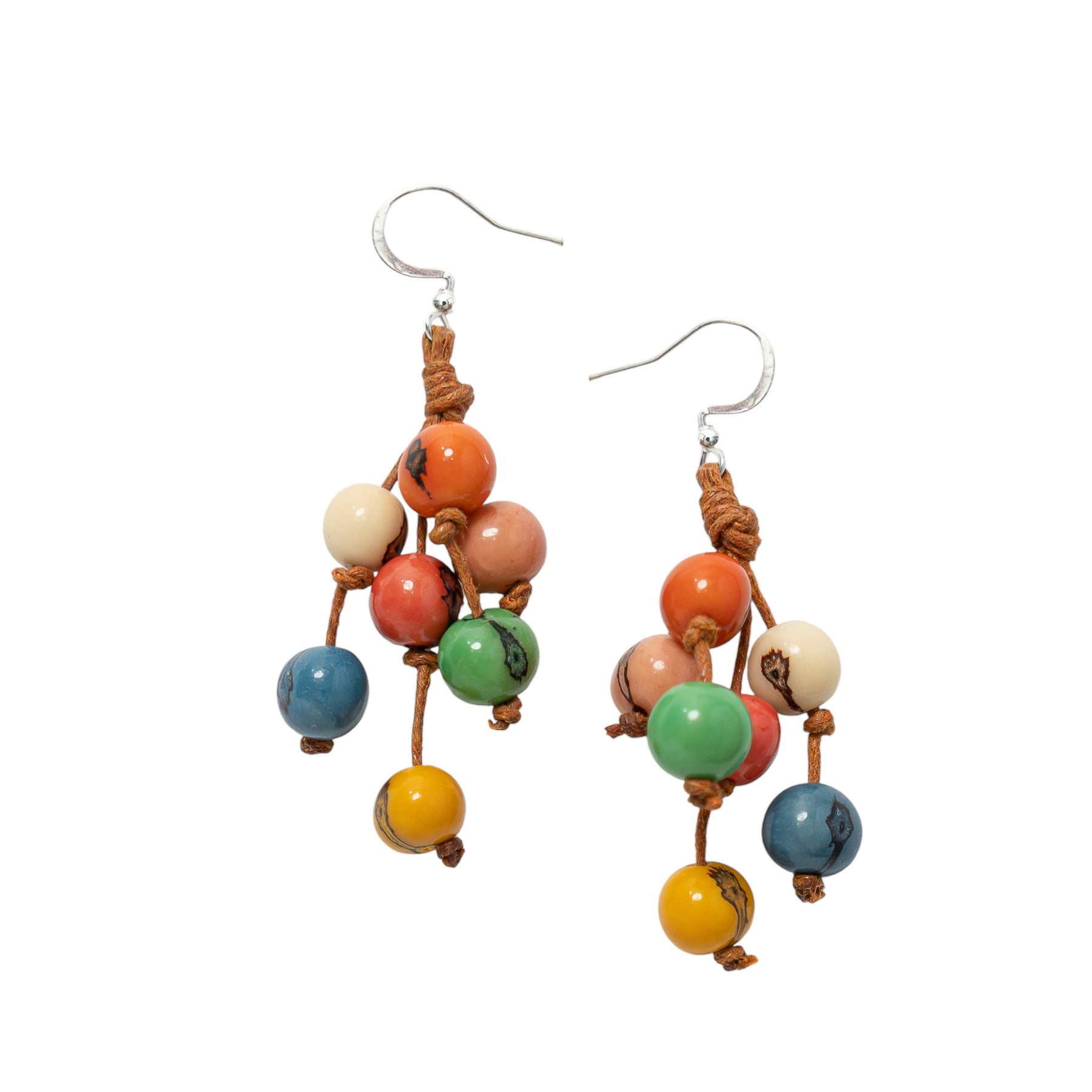 The Shayla Earrings feature playful clusters of smooth tagua beads that create a fun, lightweight drop with natural movement. Handmade by Ecuadorian artisans, each pair offers a vibrant pop of color and an artisanal touch that brightens any look. Comfortable and easy to style, they’re the perfect everyday statement.