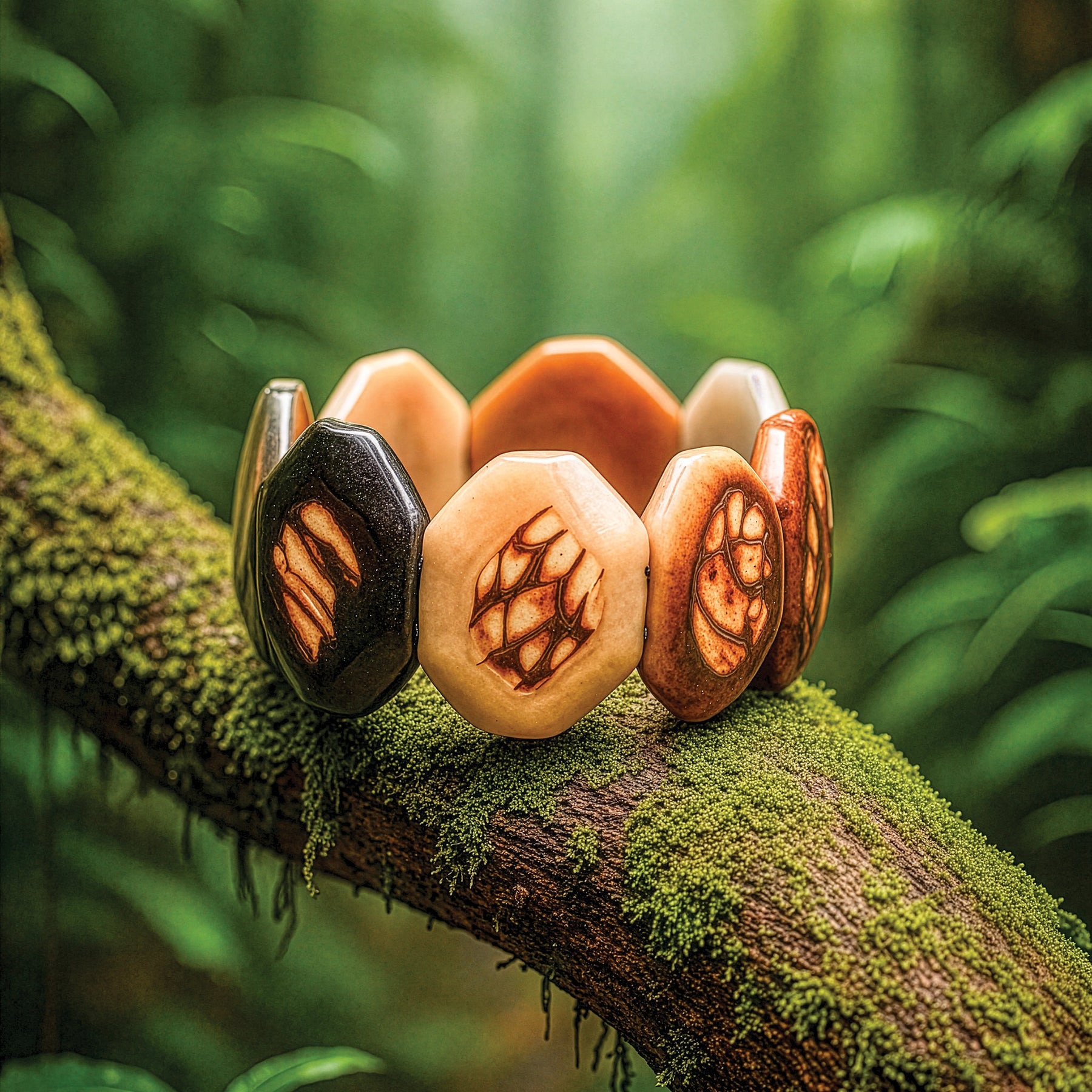 Bright and cheery stretchable bracelet handmade with tagua with natural leftover grain.