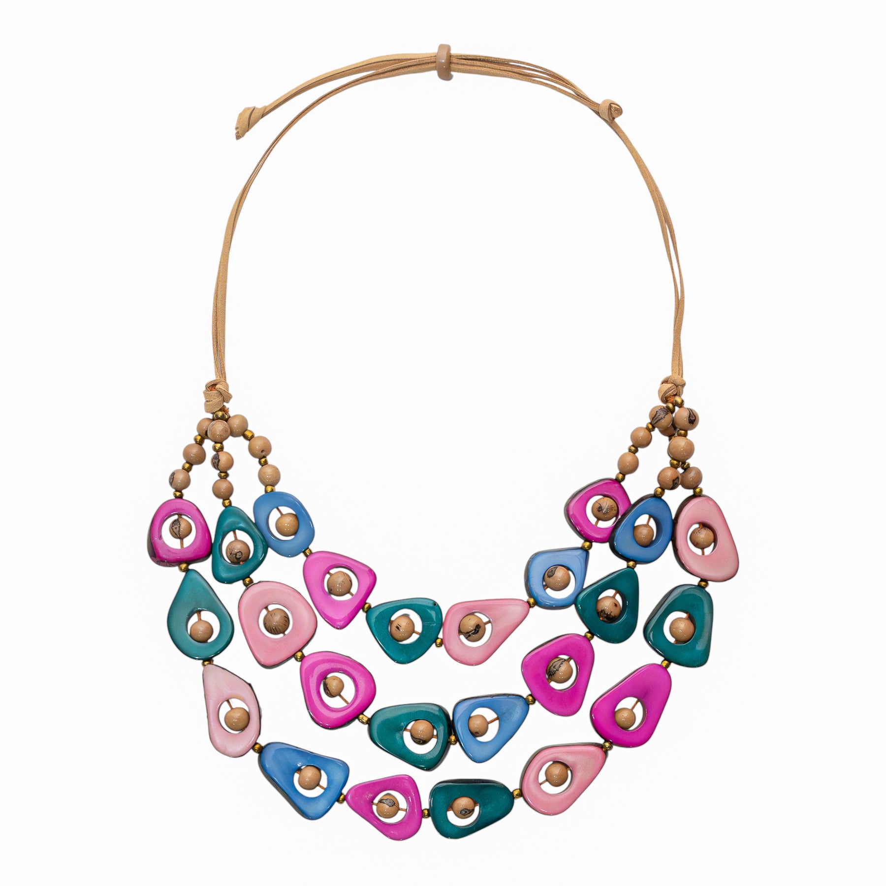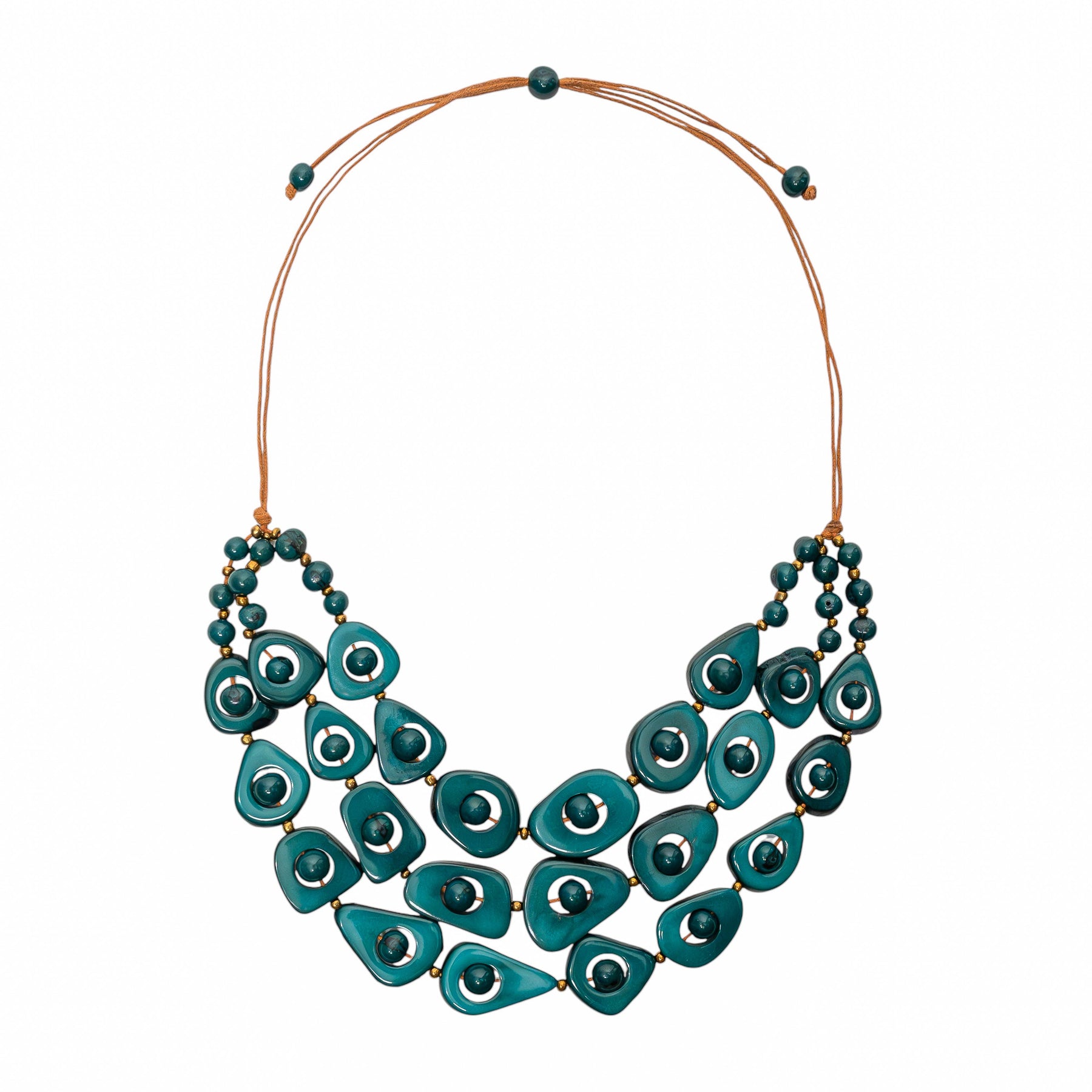The Solana Necklace brings a sun-kissed vibrancy to any look, featuring polished tagua elements that echo the warmth and fluidity of nature. Its bold silhouette and smooth organic shapes create a striking standalone statement piece, crafted to highlight color, texture, and the artistry behind every hand-carved bead.