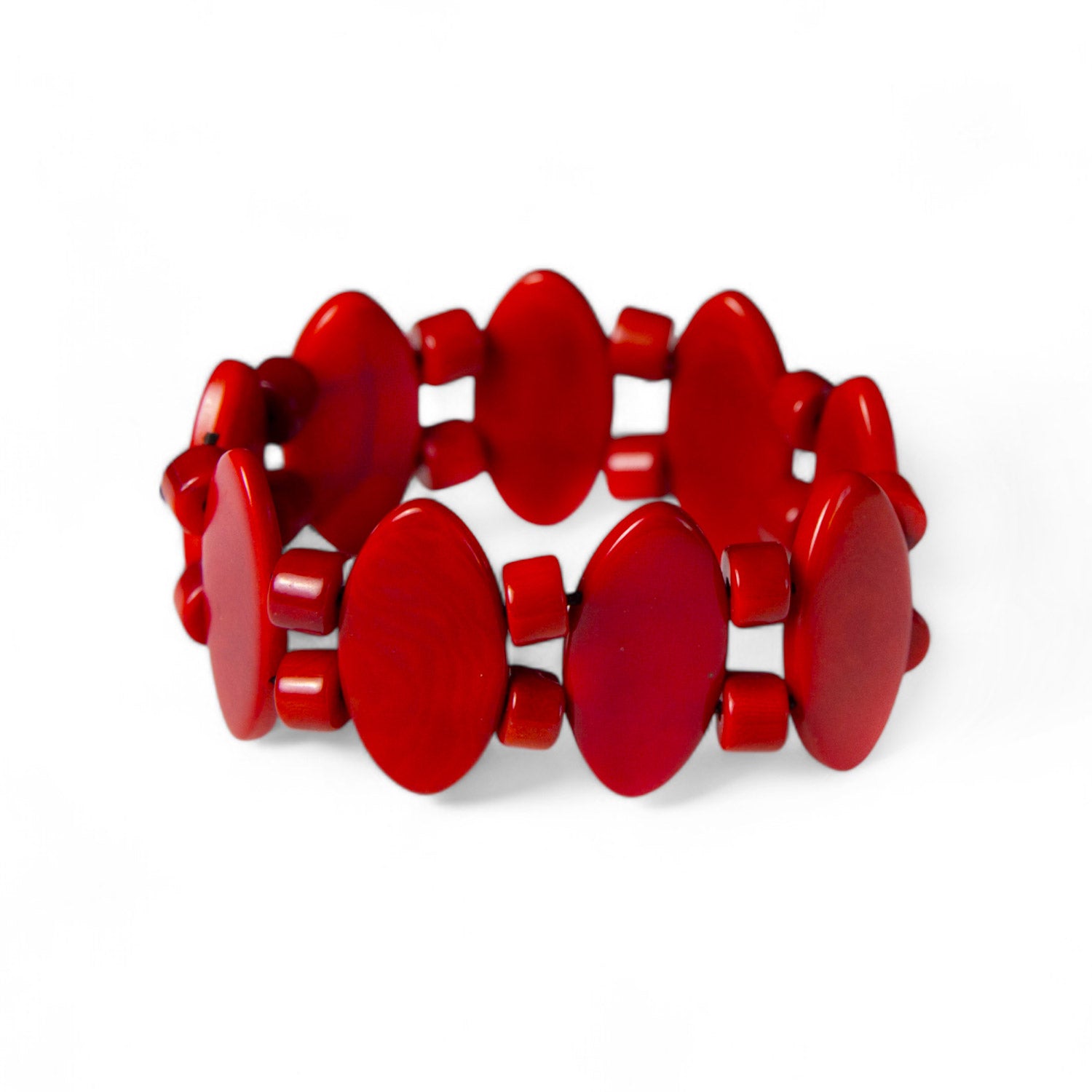 Bold and beautiful, the Payton Bracelet adds a touch of elegance to any outfit. With smooth, flat tagua oval pieces, perfectly complemented by tiny tagua bead accents, this stretchy bracelet is comfortable and stylish. Handcrafted by artisans who delicately slice and dye each tagua nut, the vibrant colors and unique design make this bracelet a standout accessory, whether you're dressing up or adding a pop of color to your casual look.