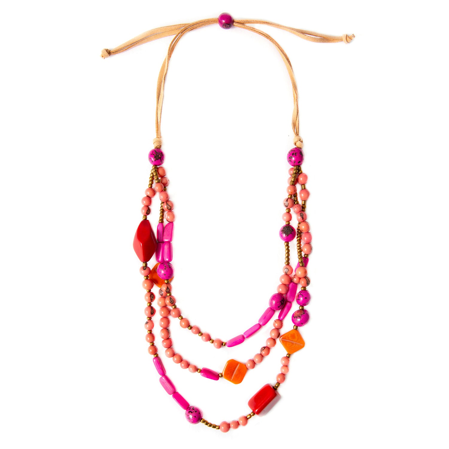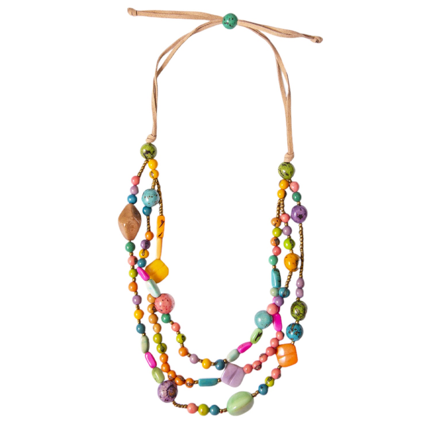 Whimsical adjustable necklace made with a beautiful mix of tagua, bombona seeds, and acai berries.