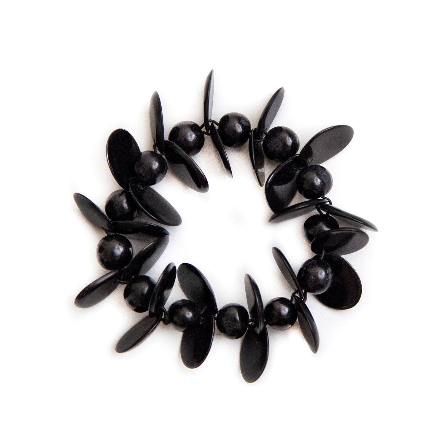 Vibrant and playful stretchable bracelet with carefully hand-carved tagua slices and accented with dried acai berries.