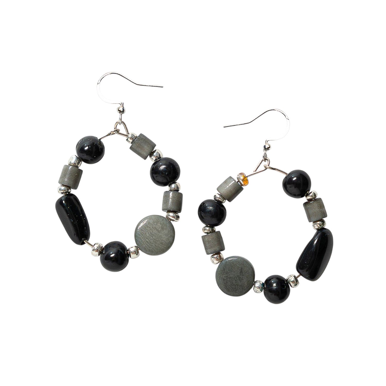 2" artisan-made hoop earrings featuring smooth tagua pieces and natural açaí berries. A creative expression of eco-chic design—elevated, vibrant, and versatile.