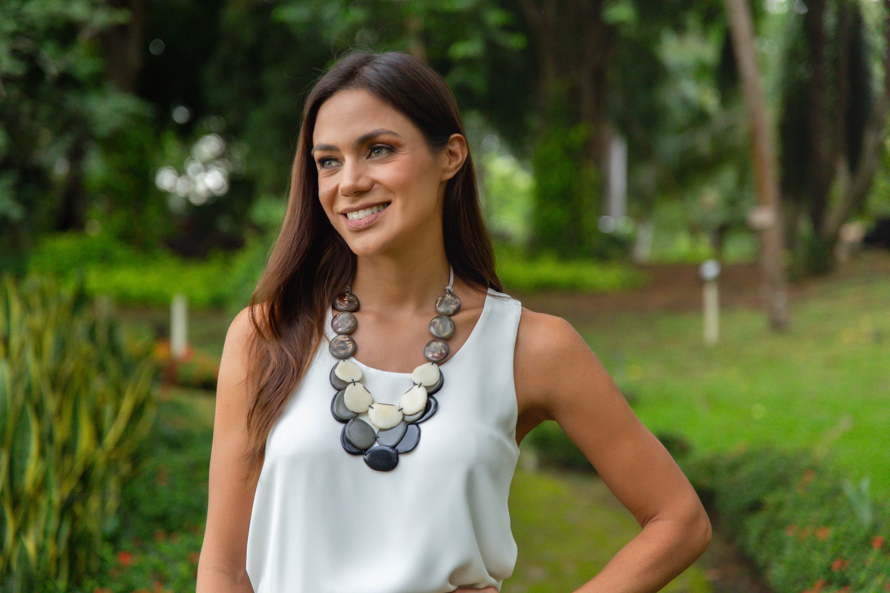 The Polaris Necklace is an expertly crafted, adjustable statement piece ranging from 20" to 32" in length. Handmade using a curated selection of tagua pieces, it highlights a variety of textures that create a radiant and dynamic visual effect. This necklace offers both versatility and sophistication, perfect for those who appreciate sustainable, artisanal jewelry with a distinctive character.